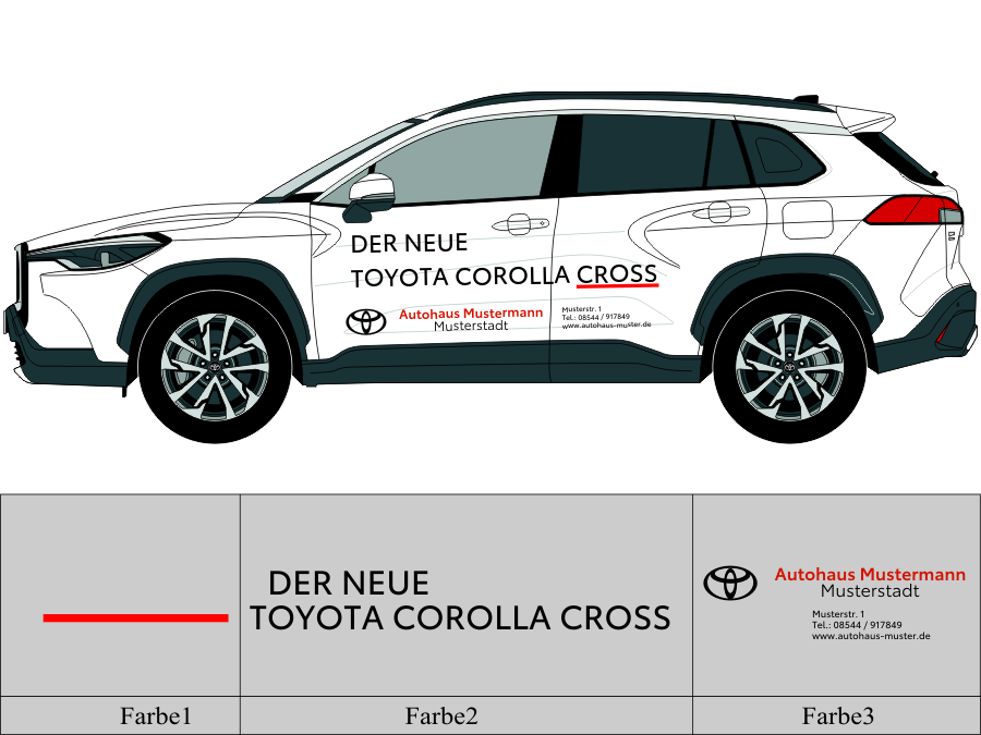 Die von uns verwendete Folie ist eine weiche PVC Folie für kurz bis mittelfristige Beschriftungen auf glatten und ebenen Untergründen ( ca. 2-4 Jahre)