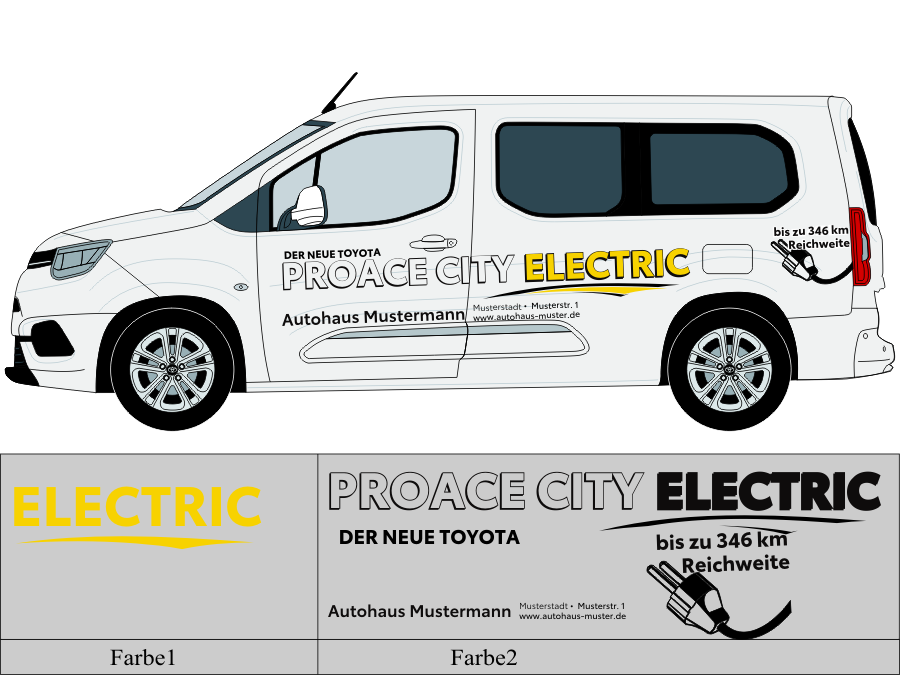 Die von uns verwendete Folie ist eine weiche PVC Folie für kurz bis mittelfristige Beschriftungen auf glatten und ebenen Untergründen ( ca. 2-4 Jahre)