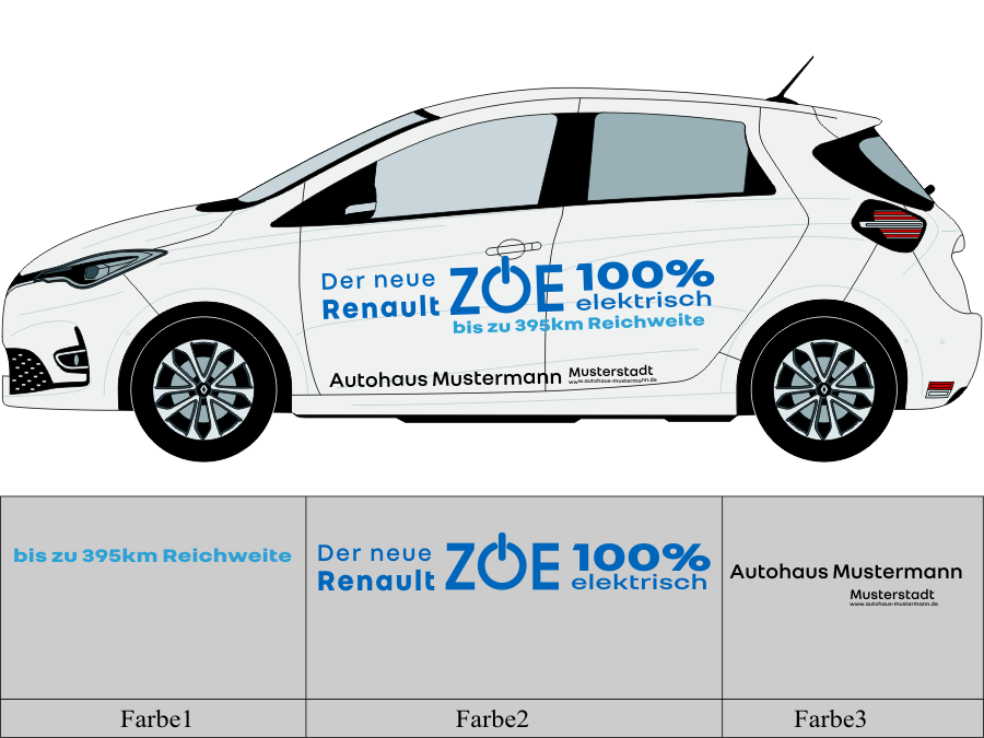 Die von uns verwendete Folie ist eine weiche PVC Folie für kurz bis mittelfristige Beschriftungen auf glatten und ebenen Untergründen ( ca. 2-4 Jahre)