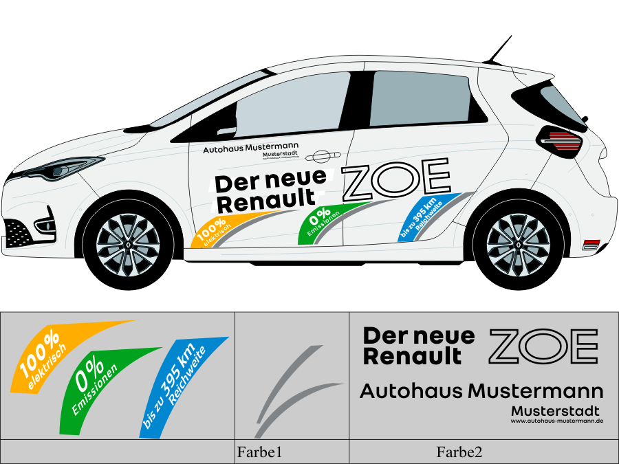 Die von uns verwendete Folie ist eine weiche PVC Folie für kurz bis mittelfristige Beschriftungen auf glatten und ebenen Untergründen ( ca. 2-4 Jahre)