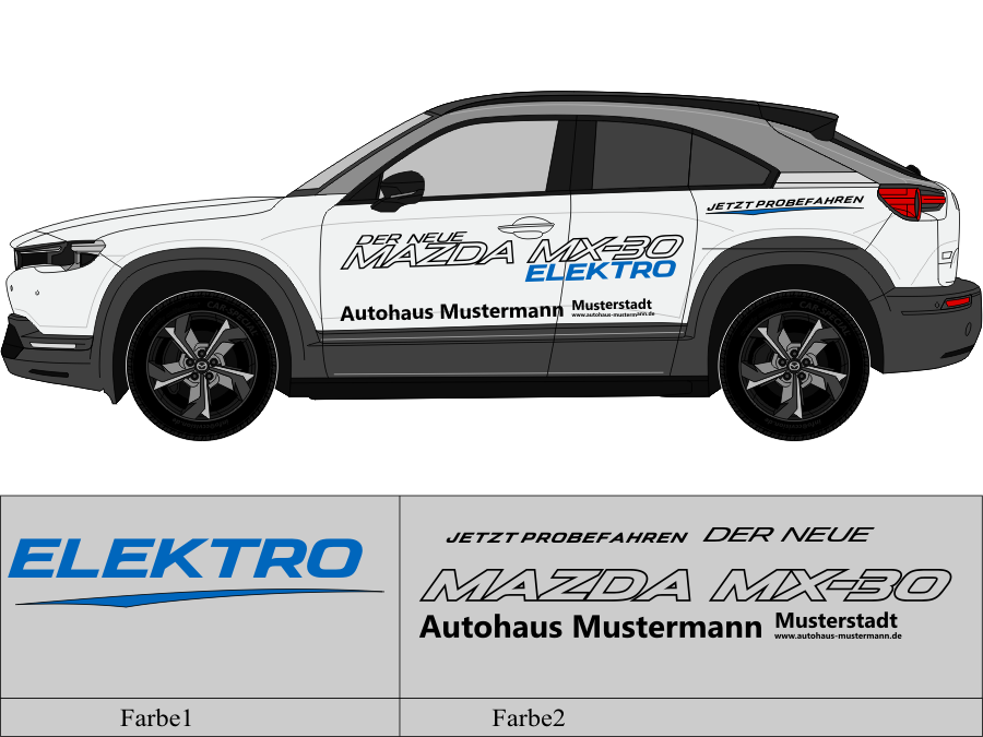 Die von uns verwendete Folie ist eine weiche PVC Folie für kurz bis mittelfristige Beschriftungen auf glatten und ebenen Untergründen ( ca. 2-4 Jahre)