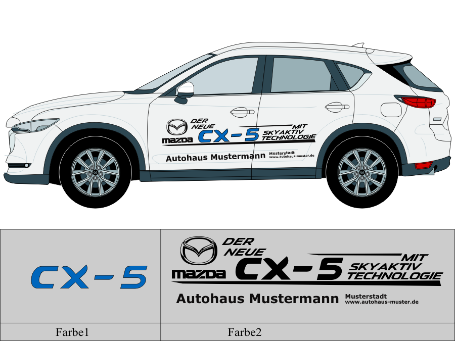 Die von uns verwendete Folie ist eine weiche PVC Folie für kurz bis mittelfristige Beschriftungen auf glatten und ebenen Untergründen ( ca. 2-4 Jahre)