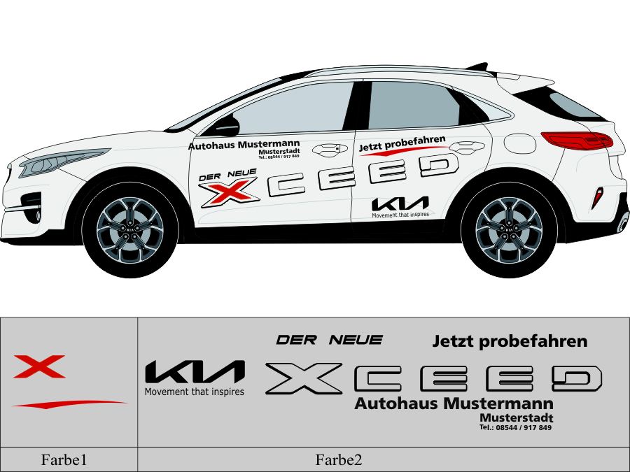 Die von uns verwendete Folie ist eine weiche PVC Folie für kurz bis mittelfristige Beschriftungen auf glatten und ebenen Untergründen ( ca. 2-4 Jahre)