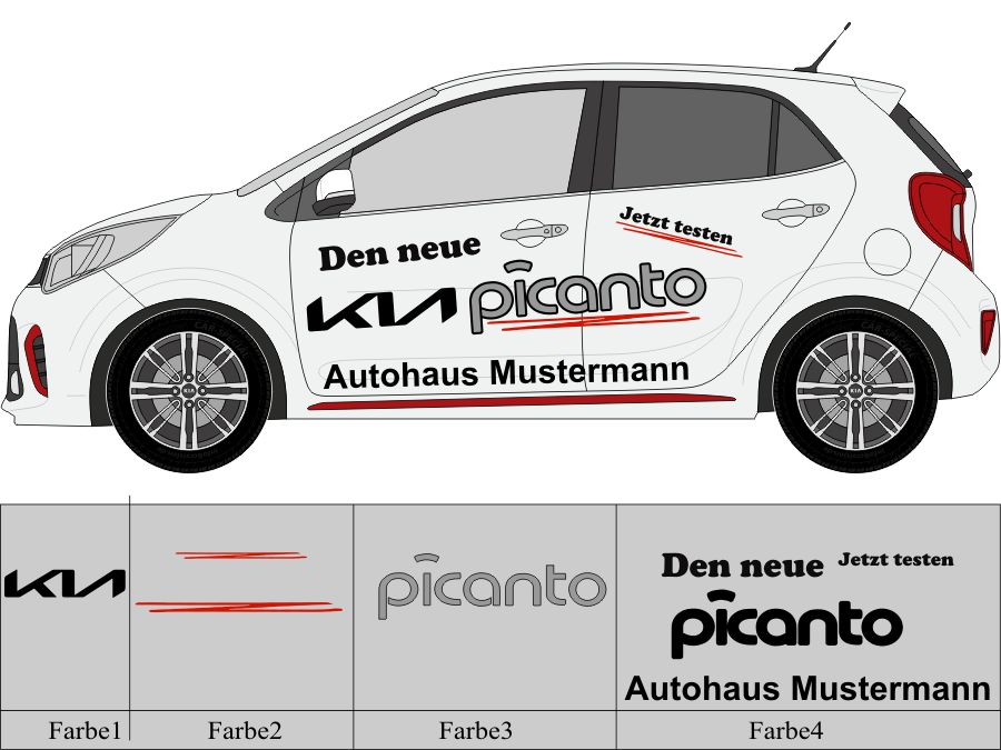 Die von uns verwendete Folie ist eine weiche PVC Folie für kurz bis mittelfristige Beschriftungen auf glatten und ebenen Untergründen ( ca. 2-4 Jahre)