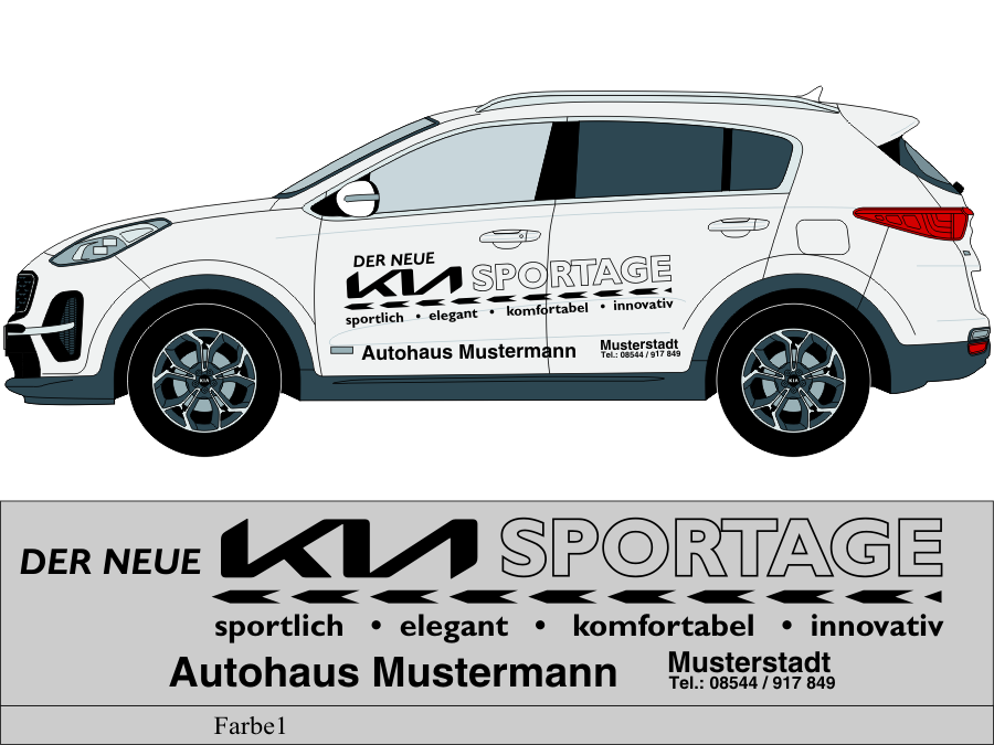 Die von uns verwendete Folie ist eine weiche PVC Folie für kurz bis mittelfristige Beschriftungen auf glatten und ebenen Untergründen ( ca. 2-4 Jahre)