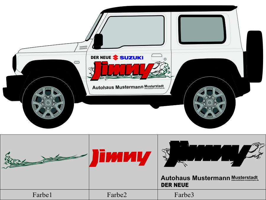 Die von uns verwendete Folie ist eine weiche PVC Folie für kurz bis mittelfristige Beschriftungen auf glatten und ebenen Untergründen ( ca. 2-4 Jahre)
