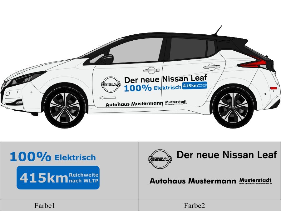 Die von uns verwendete Folie ist eine weiche PVC Folie für kurz bis mittelfristige Beschriftungen auf glatten und ebenen Untergründen ( ca. 2-4 Jahre)