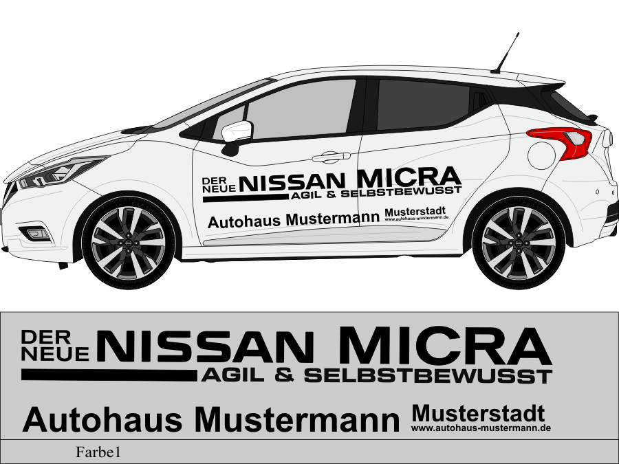 Die von uns verwendete Folie ist eine weiche PVC Folie für kurz bis mittelfristige Beschriftungen auf glatten und ebenen Untergründen ( ca. 2-4 Jahre)