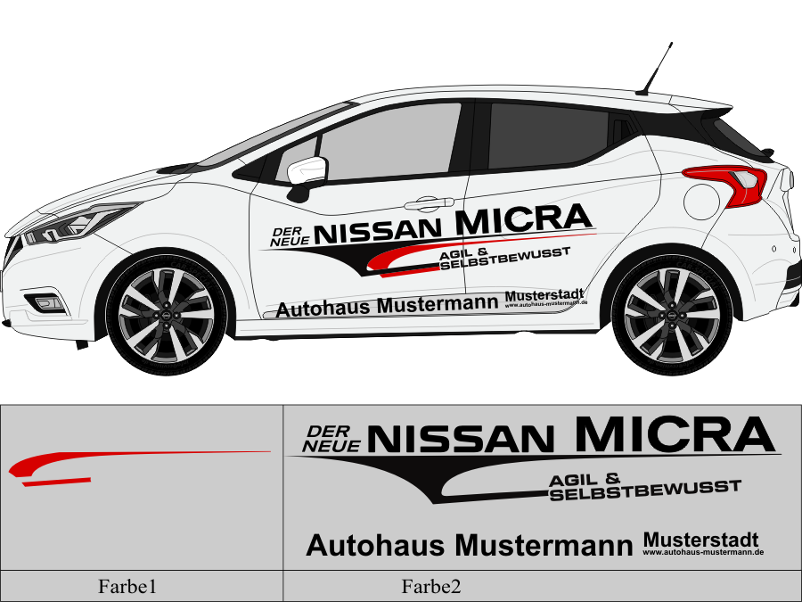 Die von uns verwendete Folie ist eine weiche PVC Folie für kurz bis mittelfristige Beschriftungen auf glatten und ebenen Untergründen ( ca. 2-4 Jahre)