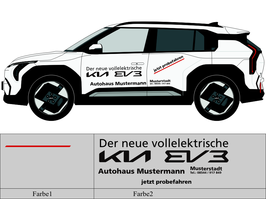 Die von uns verwendete Folie ist eine weiche PVC Folie für kurz bis mittelfristige Beschriftungen auf glatten und ebenen Untergründen ( ca. 2-4 Jahre)