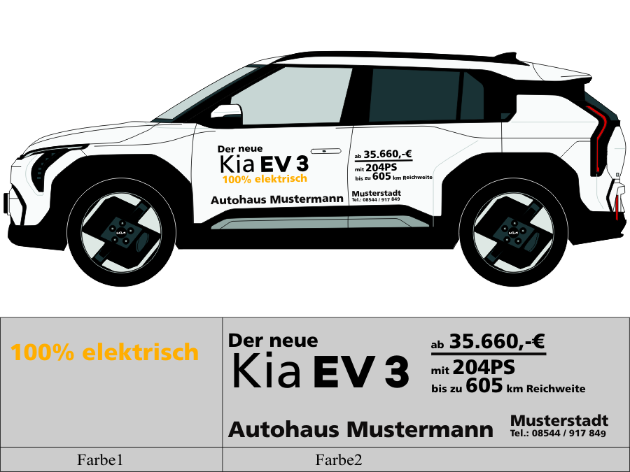 Die von uns verwendete Folie ist eine weiche PVC Folie für kurz bis mittelfristige Beschriftungen auf glatten und ebenen Untergründen ( ca. 2-4 Jahre)