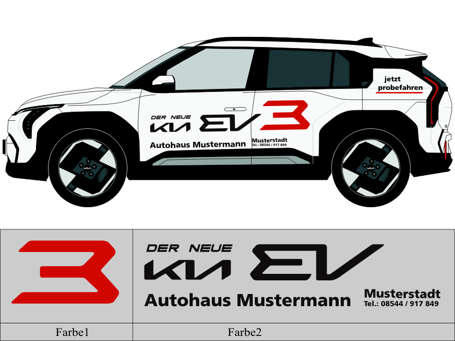 Die von uns verwendete Folie ist eine weiche PVC Folie für kurz bis mittelfristige Beschriftungen auf glatten und ebenen Untergründen ( ca. 2-4 Jahre)