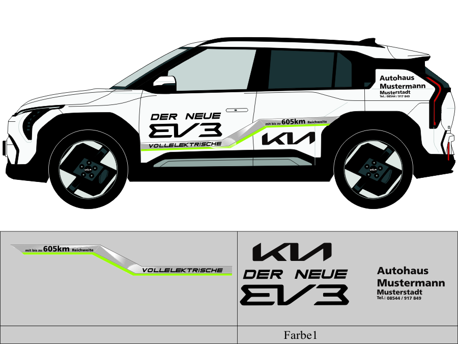 Die von uns verwendete Folie ist eine weiche PVC Folie für kurz bis mittelfristige Beschriftungen auf glatten und ebenen Untergründen ( ca. 2-4 Jahre)