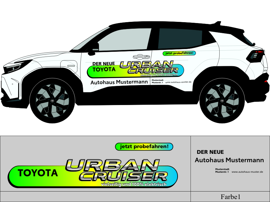 Beschriftungsvorschlag Nr 3155 für Toyota Urban Cruiser 100% Elektrisch